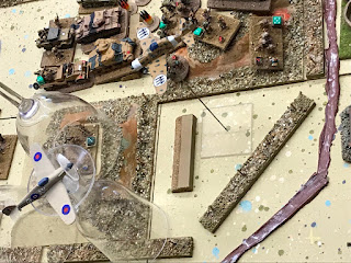 The 15mm toys were mostly provided by Chris, with Trebian providing a couple of Italian divisions (fresh from the Spanish Civil War, with transport from 1970s Africa) and Phil bringing his Free French brigade. I had been asked to bring suitable 1/144 scale aircraft models but Chris had rather underestimated the size of my Regia Aeronautica. You may remember this earlier post , and indeed this one and this one. This mattered as Chris had decided to limit the Axis air effort by only allowing us to use each model once.....