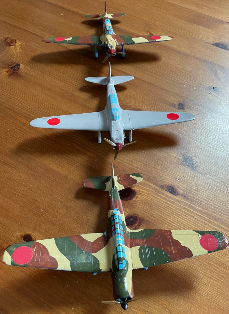 Yes I know these are all Army 'planes but who could resist the title? Here are the completed bombers. From the front - Ki-30 and two Ki-32. I think they look rather smart.